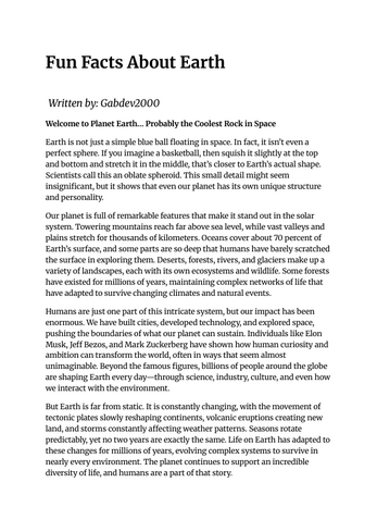 This is a 14-page article that gives information about fun facts on Earth, and it’s available for only $20.